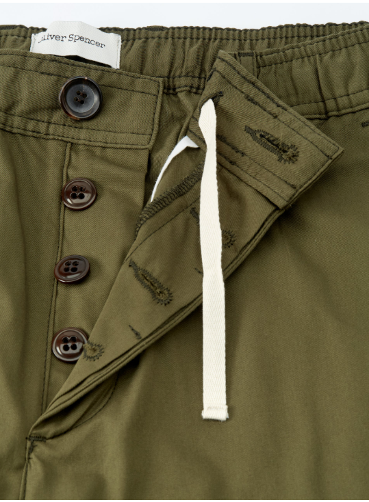 An Oliver Spencer classic, the drawstring trouser is a relaxed style cut straight through the leg with two back pockets, a cotton drawstring through the waistband and a button fly. For this version, we've used 100% cotton to create a midweight and extremely versatile trouser that forms part of a suit, or can be worn as a separate.