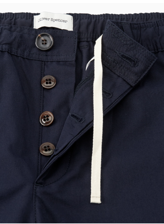 An Oliver Spencer classic, the drawstring trouser is a relaxed style cut straight through the leg with two back pockets, a cotton drawstring through the waistband and a button fly. For this version, we've used 100% cotton to create a midweight and extremely versatile trouser that forms part of a suit, or can be worn as a separate.