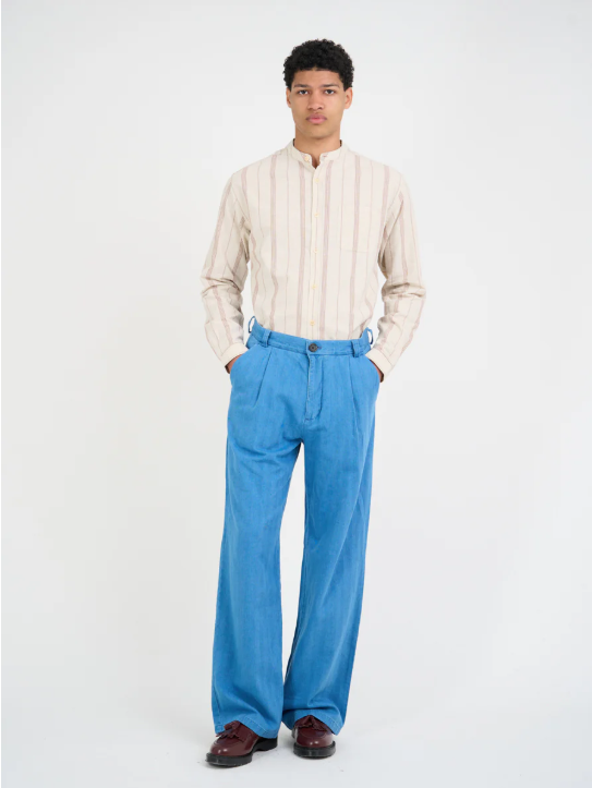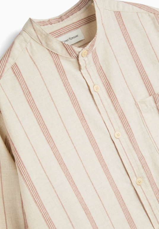 Born of utilitarian origins, the grandad collar has become a workwear classic, dressing down the archetypal men's shirt to something altogether more relaxed. This version has been cut in a lightweight soft-striped cotton cloth.