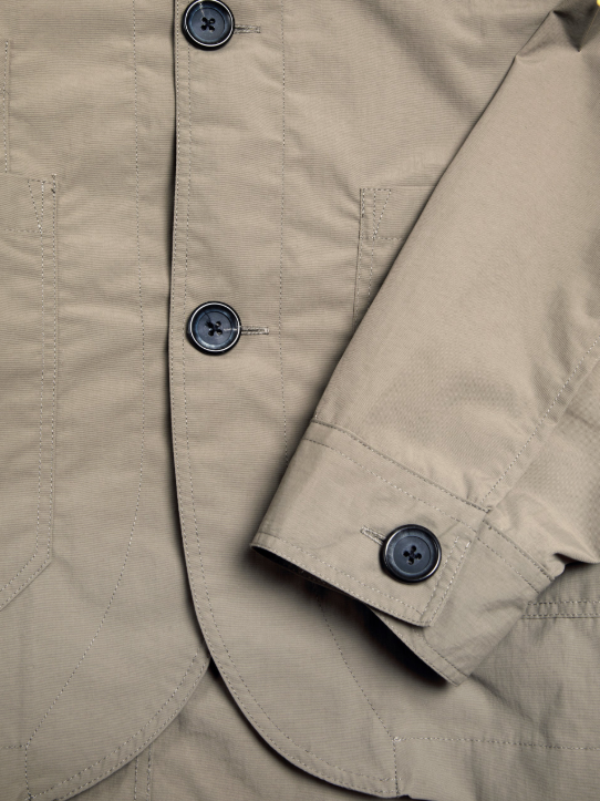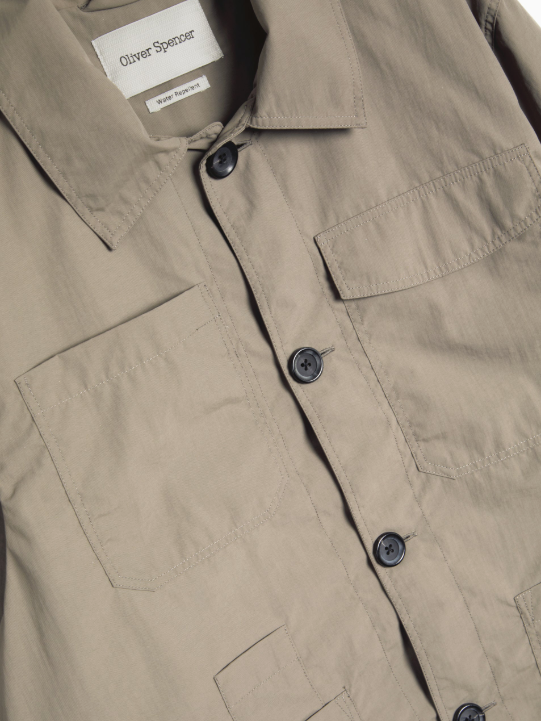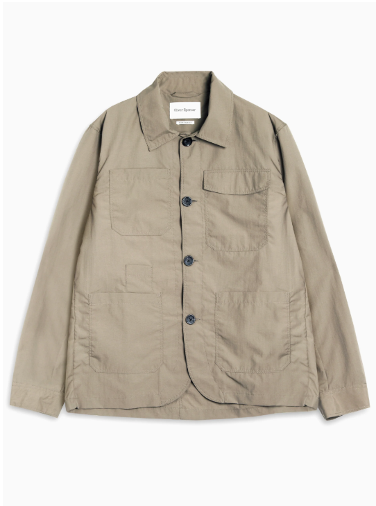 The Hythe jacket is a modern iteration of the chore jacket. This version is perfect for transitioning into spring thanks to the water repellent recycled polyamide cloth. It's lightweight, packable, and supremely functional.